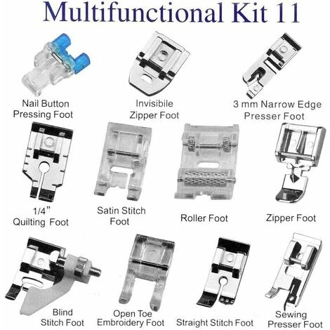 Questi piedini possono essere applicati su pelle, ricami, cerniere, bottoni, perline e altri oggetti speciali. Crea molti mestieri di cucito professionali e risparmia molto tempo. .