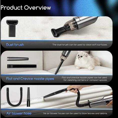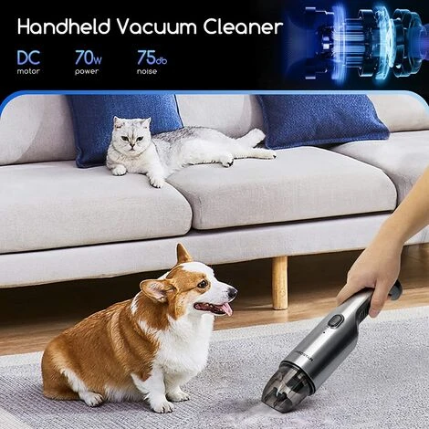 Questo aspirapolvere portatile senza fili ha una potente potenza di aspirazione, per aspirare capelli, polvere e altre particelle. La comoda impugnatura ergonomica è adatta per la presa confortevole