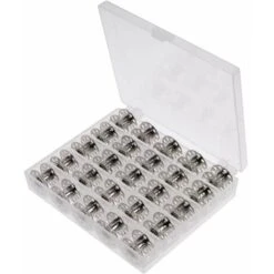 Materiale: carburo durevole. Belle bobine di metallo, standard che funzionano bene. < Br> Contenuto della confezione: un set di macchine da cucire vuote da 25 pezzi con scatola di immagazzinaggio, il filo di cotone non è incluso. < br>