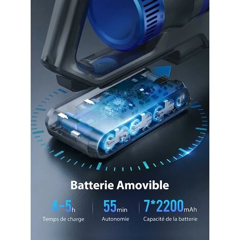 - 【55 Minuti di Autonomia】: La scopa elettrica senza fili è dotata di una batteria a 7 celle da 2200 mAh che garantisce un’accurata pulizia di un’intera casa di 200㎡, con una durata massima di 55 minuti. (20 min. ad alta potenza , 55 min. a bassa potenza).