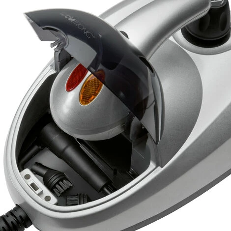 4 bar, serbatoio acqua 1,5 l, caldaia in acciaio INOX, coperchio di sicurezza per serbatoio, protezione anti-surriscaldamento, regolazione sull’impugnatura, incl. 10 accessori, 1500 W. La macchina a vapore pulisce, disinfetta e sgrassa senza residui di calcare e senza lasciare righe.