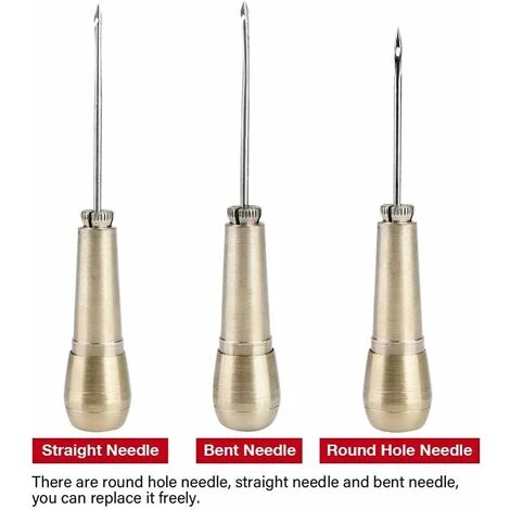È una buona scelta per rilegare libri, cucire pelle, scarpe, borse, ecc. È una buona scelta per rilegare libri, cucire pelle, scarpe, borse, ecc. L’ago è affilato e resistente, non si rompe facilmente o deformare. Puoi rimuovere e sostituire facilmente l’ago per soddisfare le diverse esigenze.Questo prodotto include 3 tipi di aghi: aghi a foro tondo, aghi dritti e aghi curvi.Il manico Cooper premium è superbo, resistente e ha una finitura liscia per una presa comoda.< /p>